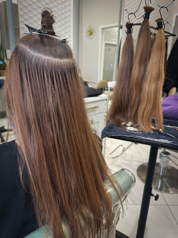 ICE Extensions are all about customization, comfort, and scalp health. I assess your hair’s texture and density to ensure your scalp isn’t overloaded, then select and blend shades from premium 100% Slavic hair for a seamless, natural match.