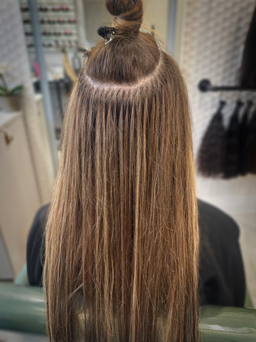 ICE Extensions also give you complete styling freedom. The tiny, discreet bonds allow for high ponytails, top knots, half-up styles, and French or Dutch braids — no visible bonds, no discomfort, no bulky corners like weft extensions.